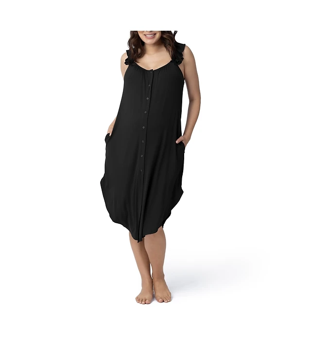 Sleeveless Poplin Midaxi Dress W/ Top Applied Pockets And Henley Neckline