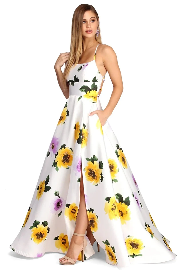 Sydney's Closet Women's Halter Satin Tea-Length White Dress