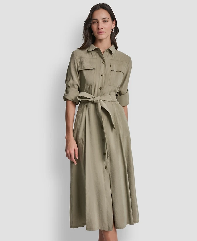 Melonie T Womens Plus Belted Short Sleeve Midi Shirt Dress
