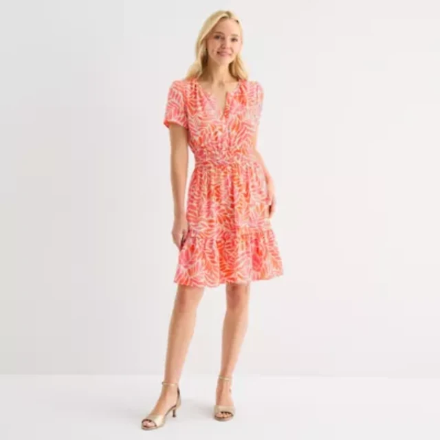 White Mark V-Neck Womens Short Sleeve A-Line Dress