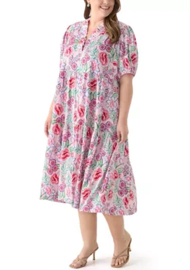 Tommy Bahama Botanical Breeze Linen Johnny Collar 3/4 Sleeve Dress