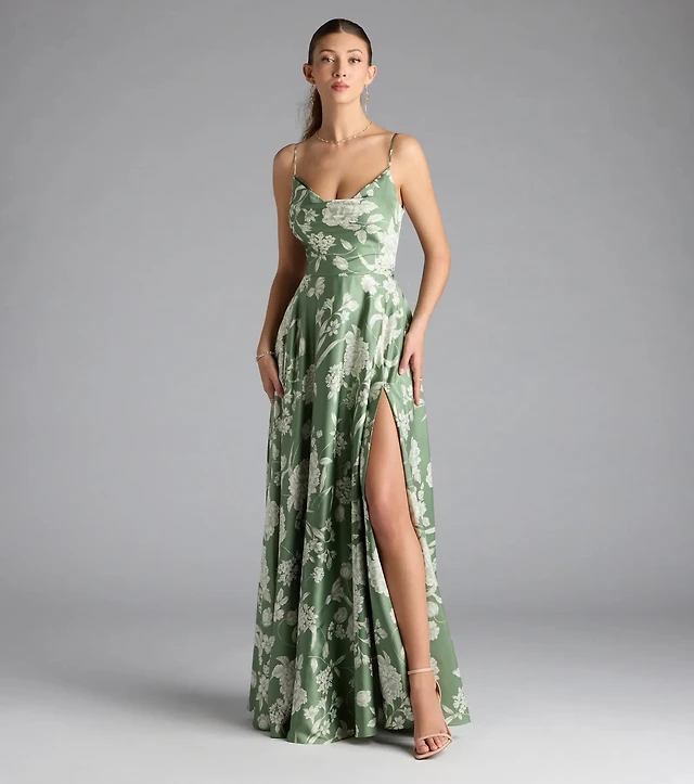 Robina Lace-Up A-Line Floral Satin Formal Dress