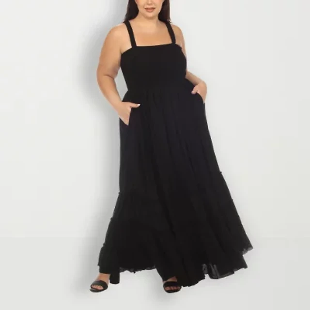 City Vibe Plus Size Metallic Square Neck Corseted Tie Back Ballgown
