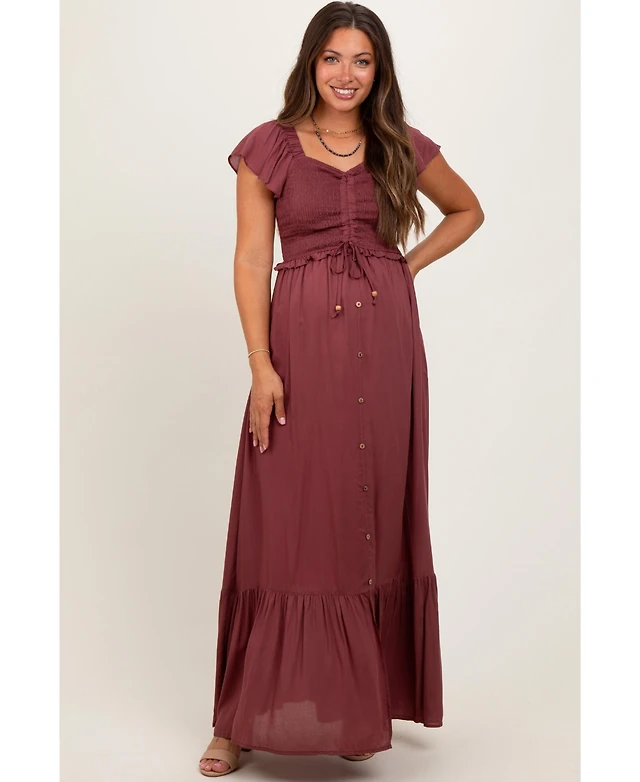Pinkblush Maternity Burgundy Swiss Dot Button Down Maxi Dress