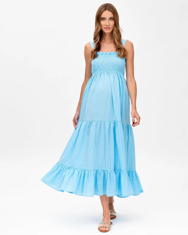 Women's Sleeveless Ruffle Shoulder Smocked Maxi Dress - Motherhood Maternity