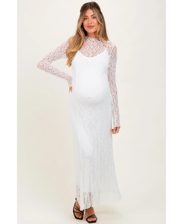 Pinkblush Maternity Light Pink Ruched Mesh Foldover Off Shoulder Maxi Dress