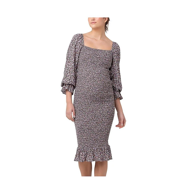Pinkblush Maternity Navy Floral Smocked Short Sleeve Dress