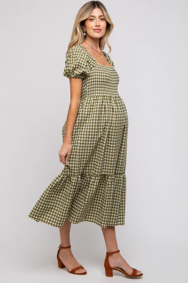 Pinkblush Maternity Olive Gingham Ruffle Strap Midi Dress