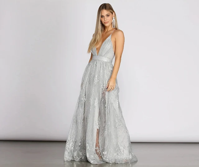 Plus Juliet Formal Sequin Scroll Dress