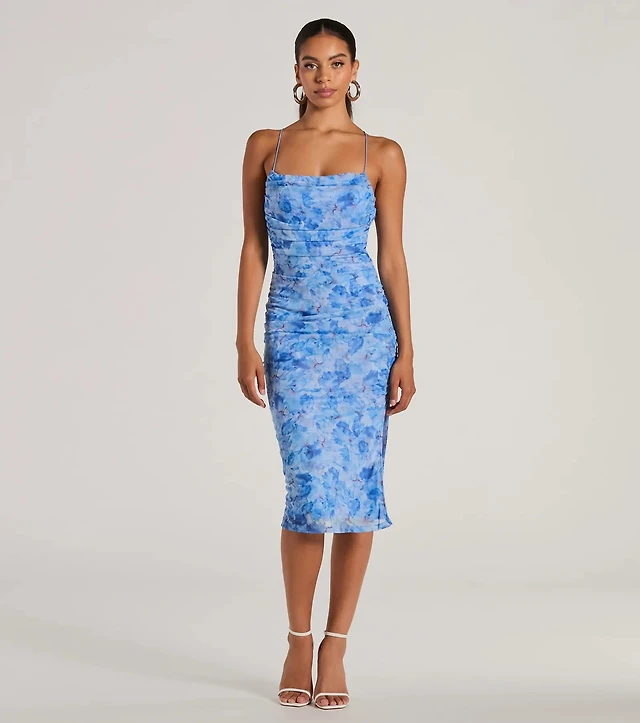 Crushworthy Mesh Ruched Midi Dress