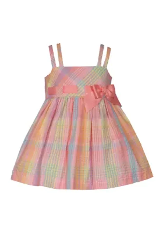 Baby Girls Double Strap Plaid Seersucker Bow Dress