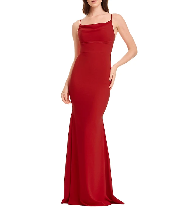 Jump Cowl Neck Spaghetti Strap Glitter Slink Dress