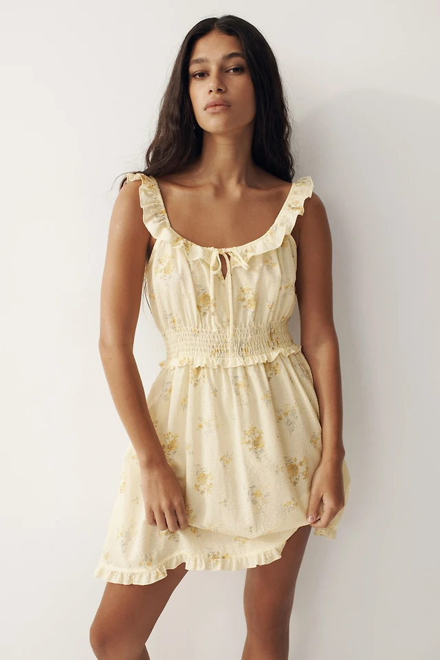 Miss Circle Women's Valda Yellow and Pink Print Linen Mini Dress with Pockets