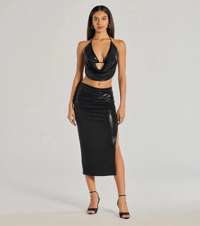 All The Deets Satin Midi Skirt