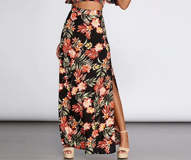 Island Flower High Slit Midi Skirt