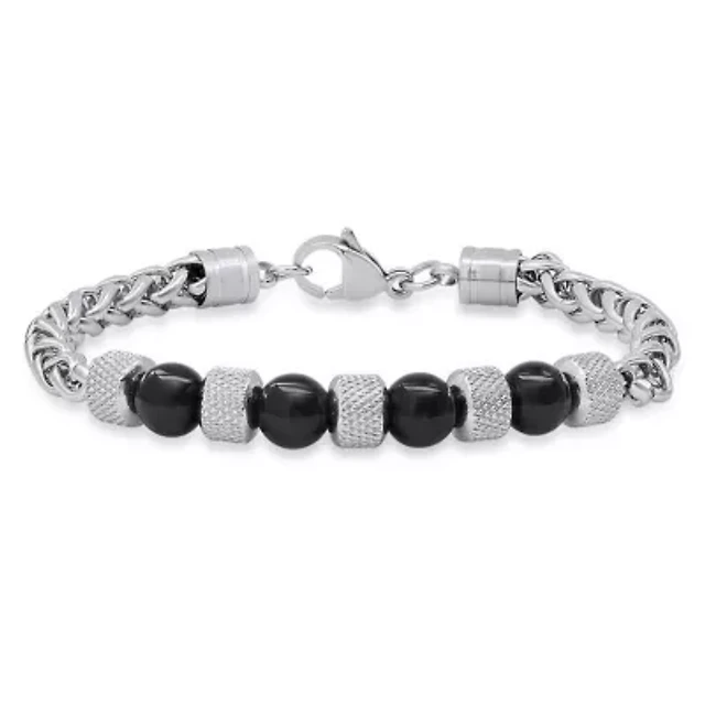 8mm Onyx Bead Bracelet with Sterling Silver Closure - 8.5"