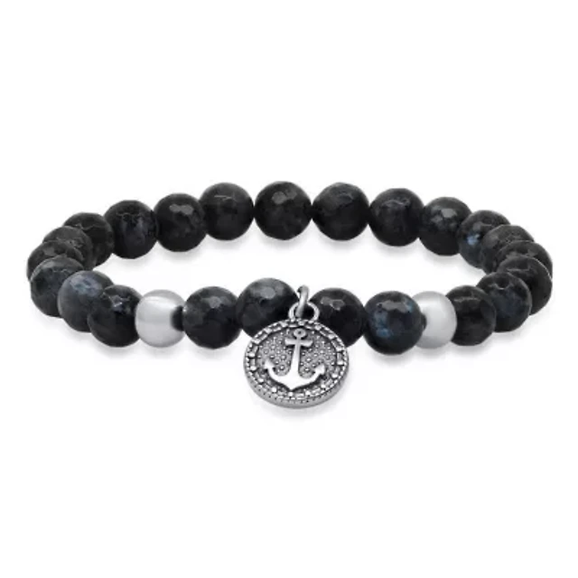Men's Diamond (1/8 ct. t.w.) & Black Enamel Bracelet in Stainless Steel