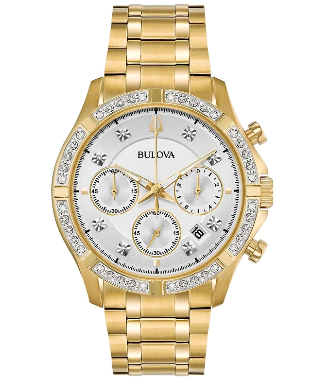 Bulova Men's Chronograph Diamond-Accent Gold-Tone Stainless Steel Bracelet Watch 42mm, Created for Macy's