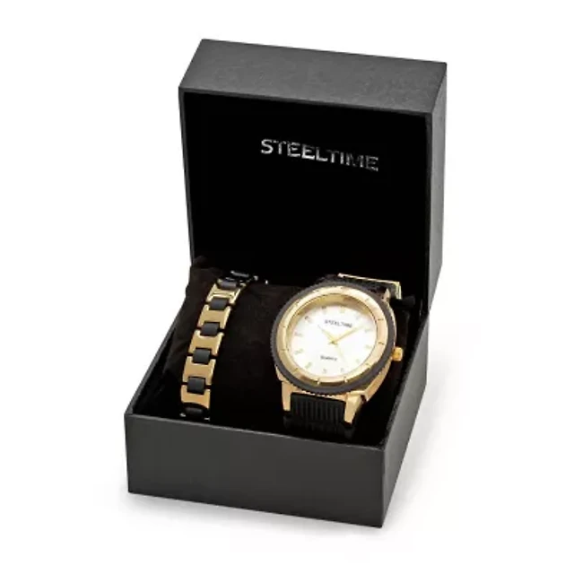 Steeltime Men's 18K Gold Plated Stainless Steel Thick Round Box Link Bracelet