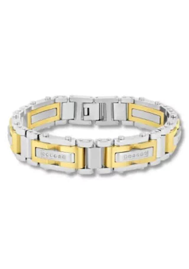Esquire Men's Jewelry Diamond Chevron Link Bracelet (1/4 ct. t.w.) in Stainless Steel & Gold-Tone Ion-Plate, Exclusively at Macy's