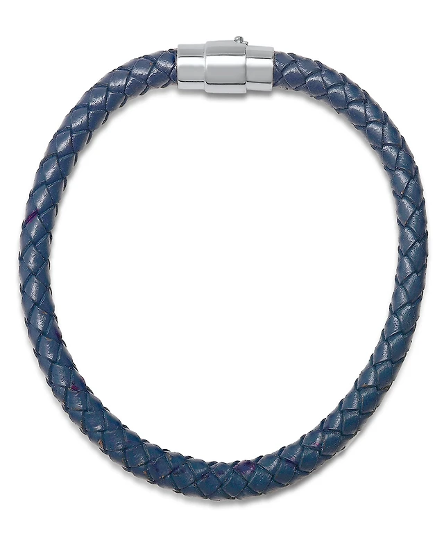 Esquire Men's Jewelry Woven Black & Blue Leather Bracelet in Sterling Silver, Created for Macy's