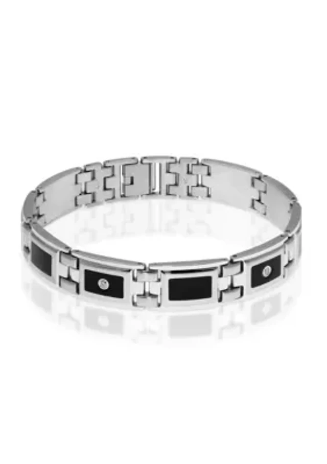 Men's Diamond and Black Resin Bracelet in Stainless Steel