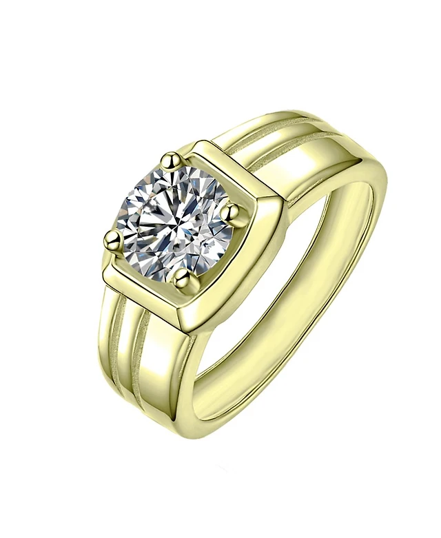 Rachel Glauber Men's Clear Cubic Zirconia with Four-Prong Setting Grooved Adjustable Band Ring