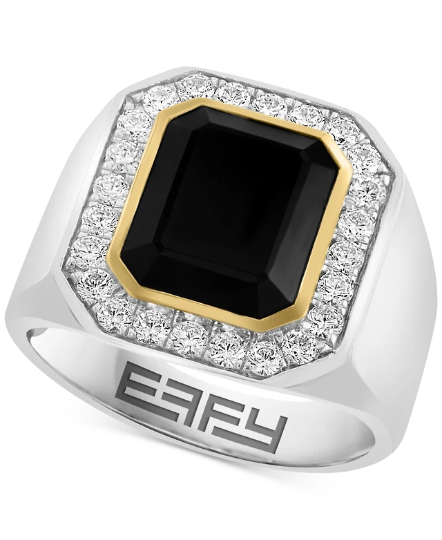 Mens Diamond Accent Genuine Black Onyx 14K Gold Over Silver Fashion Ring