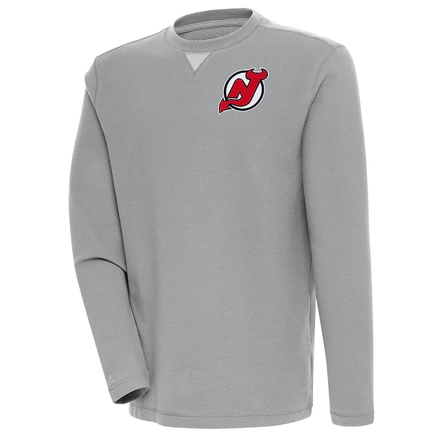 Men's Antigua Gray New Jersey Devils Flier Bunker Tri-Blend Pullover Sweatshirt