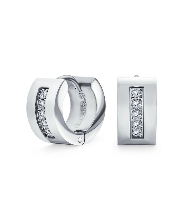 Unisex Channel Set 3 Row Cubic Zirconia Cz K-pop Wide Mini Hoop Huggie Earrings For Men Women Black Plated Steel Stainless