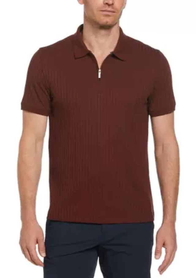 Men's Vertical Ribbed Knit Polo Shirt