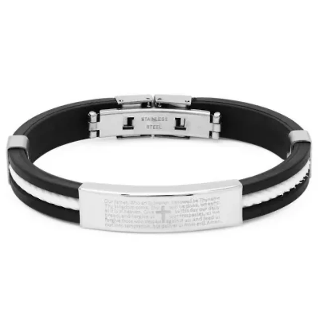 Mens Stainless Steel Lords Prayer in Spanish Id Bracelet