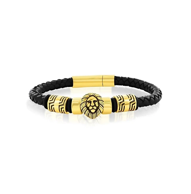 Mens 18K Gold over Stainless Steel Beaded Bracelet