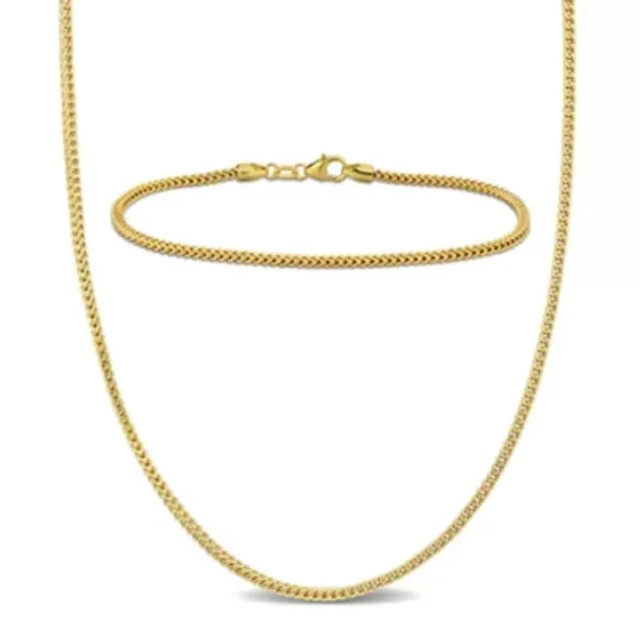 2-Pc Set of Men's Rolo Chain Link Necklace & Bracelet in Yellow Plated Sterling Silver