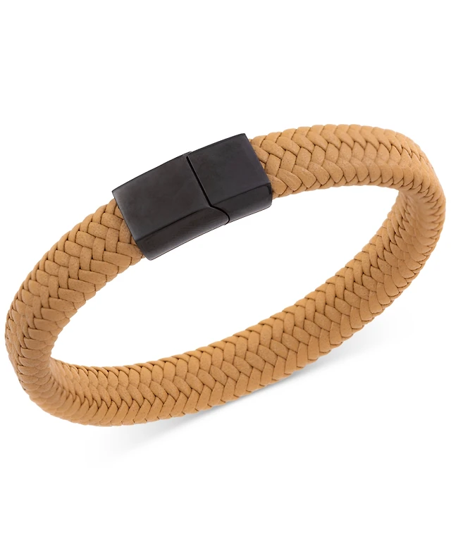 Effy Men's Leather Woven Link Bracelet in Sterling Silver
