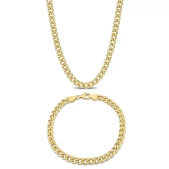 2-Pc Set of Men's 12.5mm Flat Curb Link Chain Necklace & Bracelet in Yellow Plated Sterling Silver
