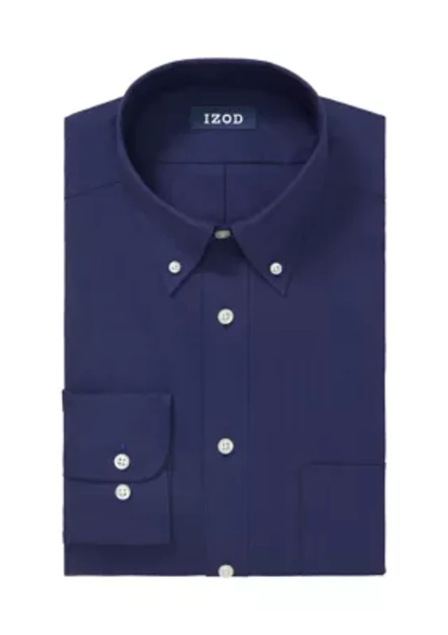 Men's Regular Fit Non-Iron Spread Collar Solid Pinpoint Dress Shirt