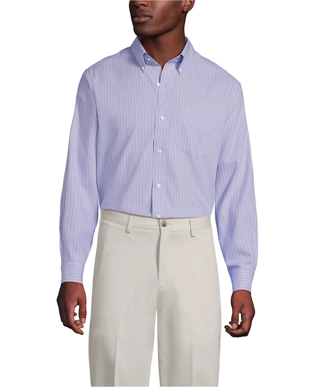 Lands' End Men's Pattern No Iron Supima Pinpoint Straight Collar Dress Shirt