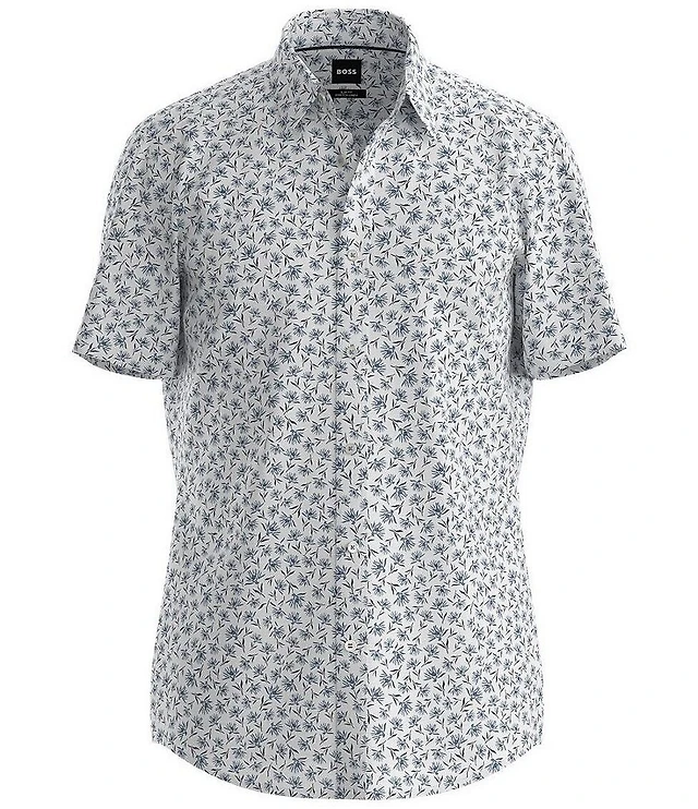 Roundtree & Yorke TravelSmart Easy Care Button Down Collar Short Sleeve Poplin Leaf Print Sport Shirt