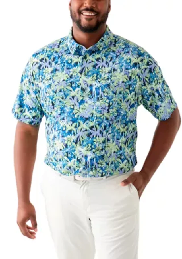 Roundtree & Yorke Big & Tall The Fairway Performance Short Sleeve Medallion Geo Print Polo Shirt