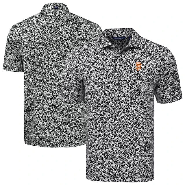 Men's Cutter & Buck Gray New York Giants Helmet Virtue Eco Pique Botanical Print Recycled Polo