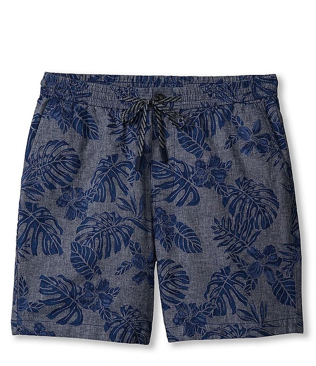 6" Slim Abstract Contrast Linen-Blend Drawstring Elastic Waist Short
