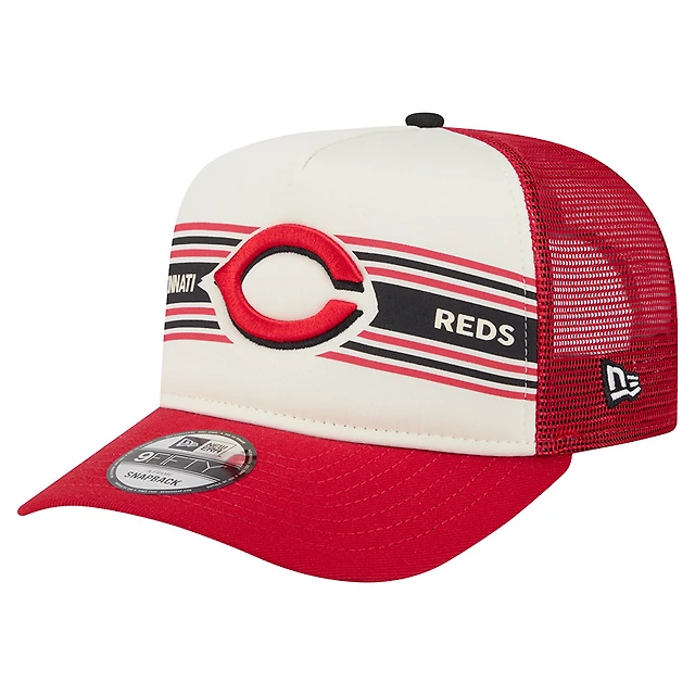 Men's New Era Cream/Red Cincinnati Reds Banner A-Frame 9FIFTY Trucker Snapback Hat