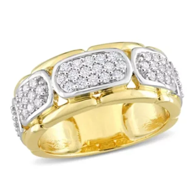 Lab Created Moissanite Station Men's Ring 2-Tone Sterling Silver with Yellow Gold Plating