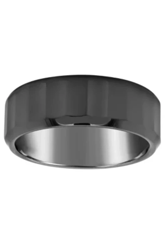 Triton Men's Two-Tone Espresso Faceted Texture Wedding Band Brown & Black Tungsten Carbide