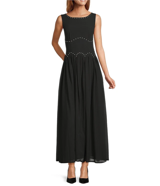 Adrianna Papell Women's Bead Pleat Long Dress