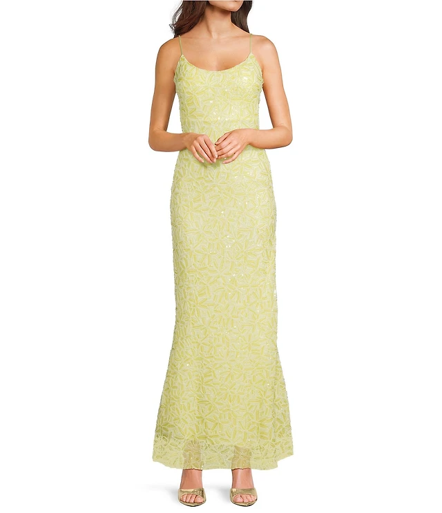 Marzia Scroll Sequin Mesh Mermaid Dress