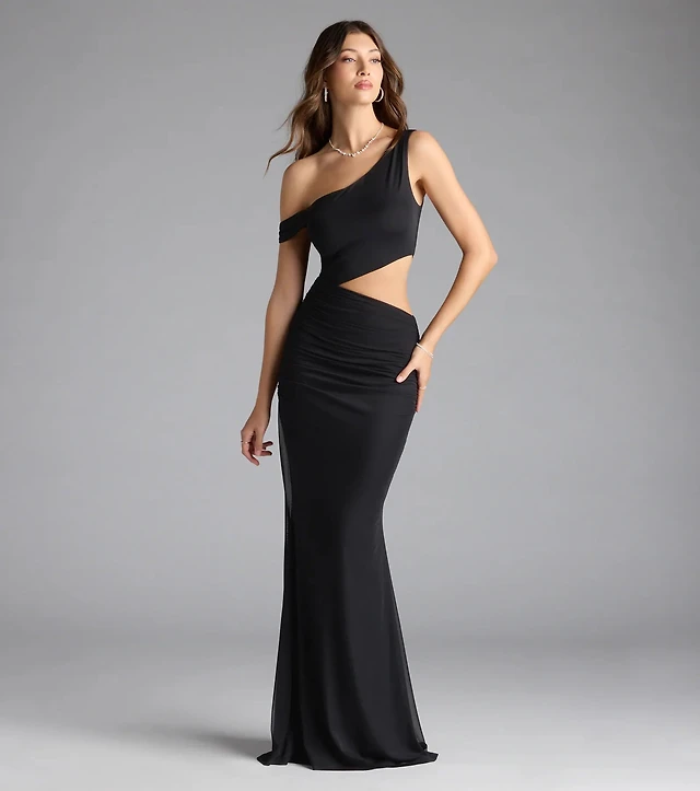 Sleek Moves Mesh One-Shoulder Mini Dress