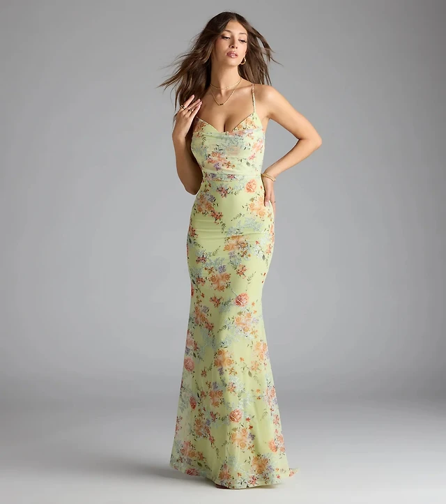 Kiana Floral Mesh Halter Mermaid Formal Dress