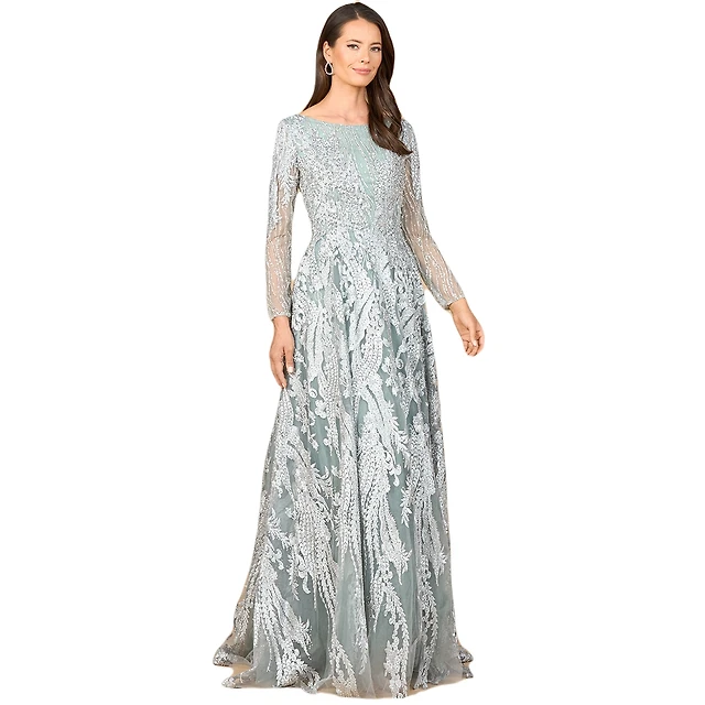 Lara Women's Long Sleeve Queen Anne Beaded Gown